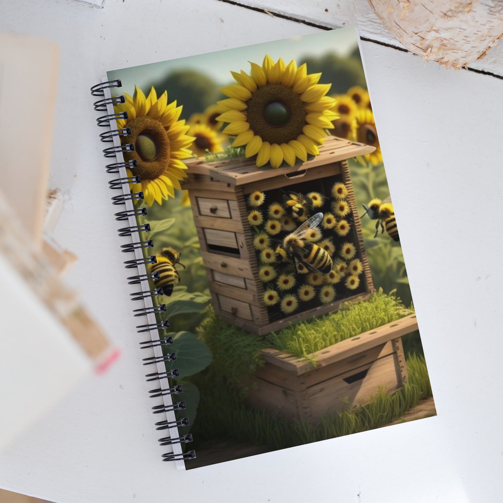 3D Sunflower Beehive Spiral Notebook